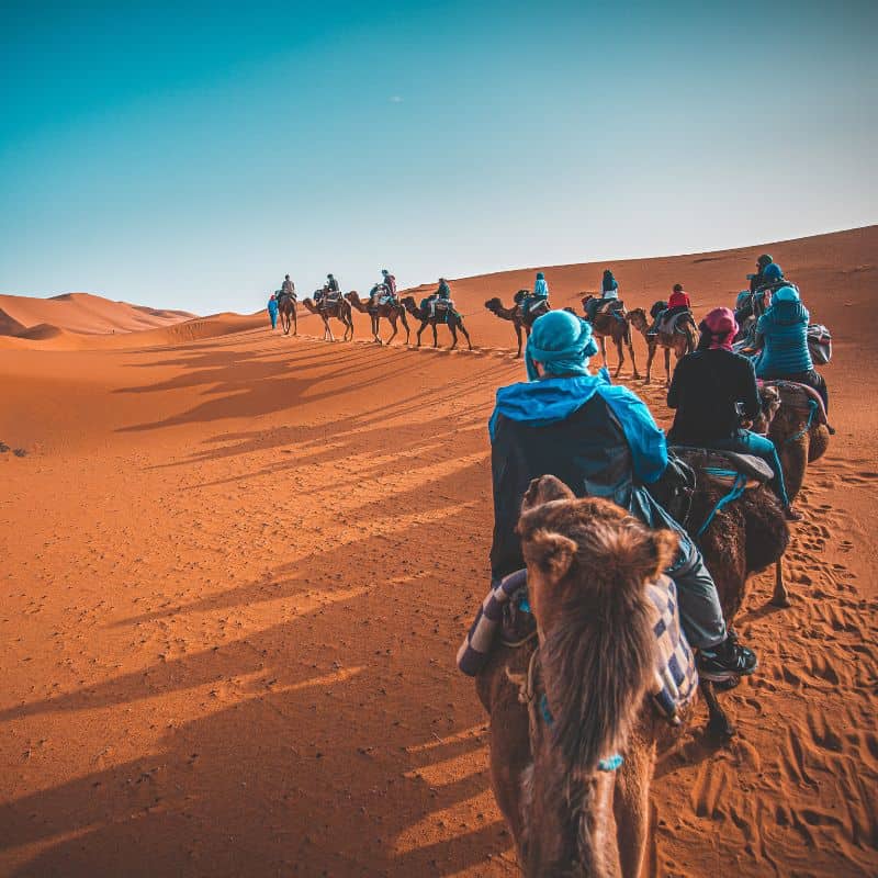 - Ride camels at sunset across the Sahara