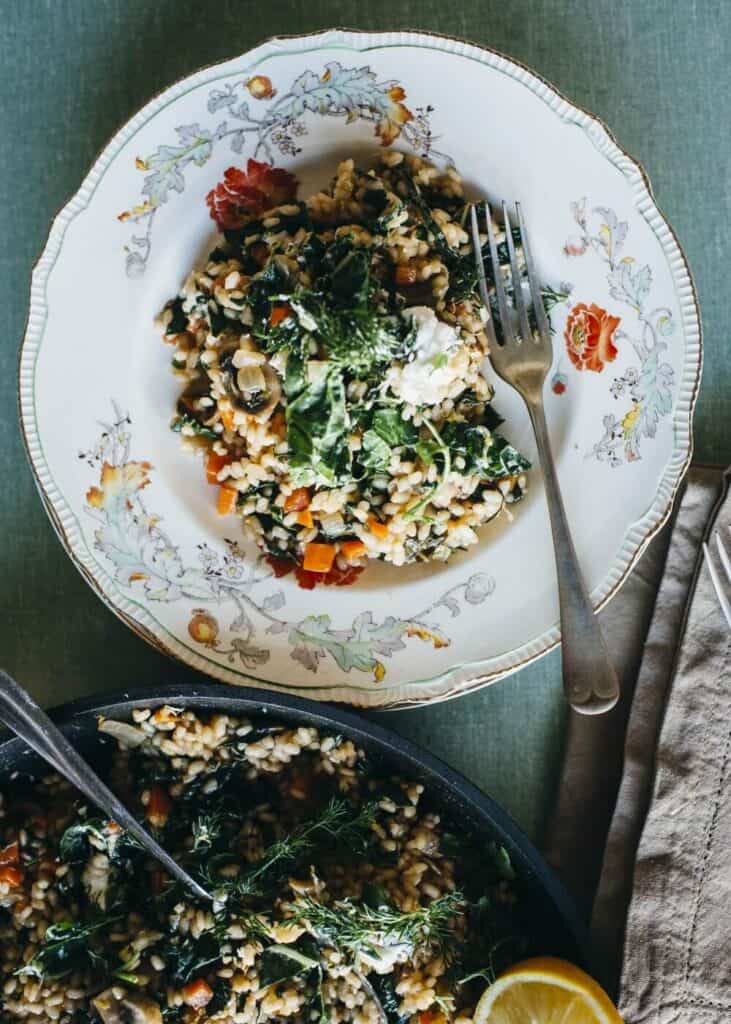 Mushroom, lemon and silverbeet risotto